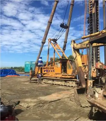 Công ty cổ phần Đầu tư và Xây dựng nền móng Phú Sỹ phụ trách thi công xử lý nền đường bằng trụ đất gia cố xi măng, thi công the0 phương pháp trộn ướt, đường kính D800. Cường độ và mô dun đàn hồi của trụ đất gia cố xi măng: qu=3,50 kg/cm2; E50 = 350 kg/cm2