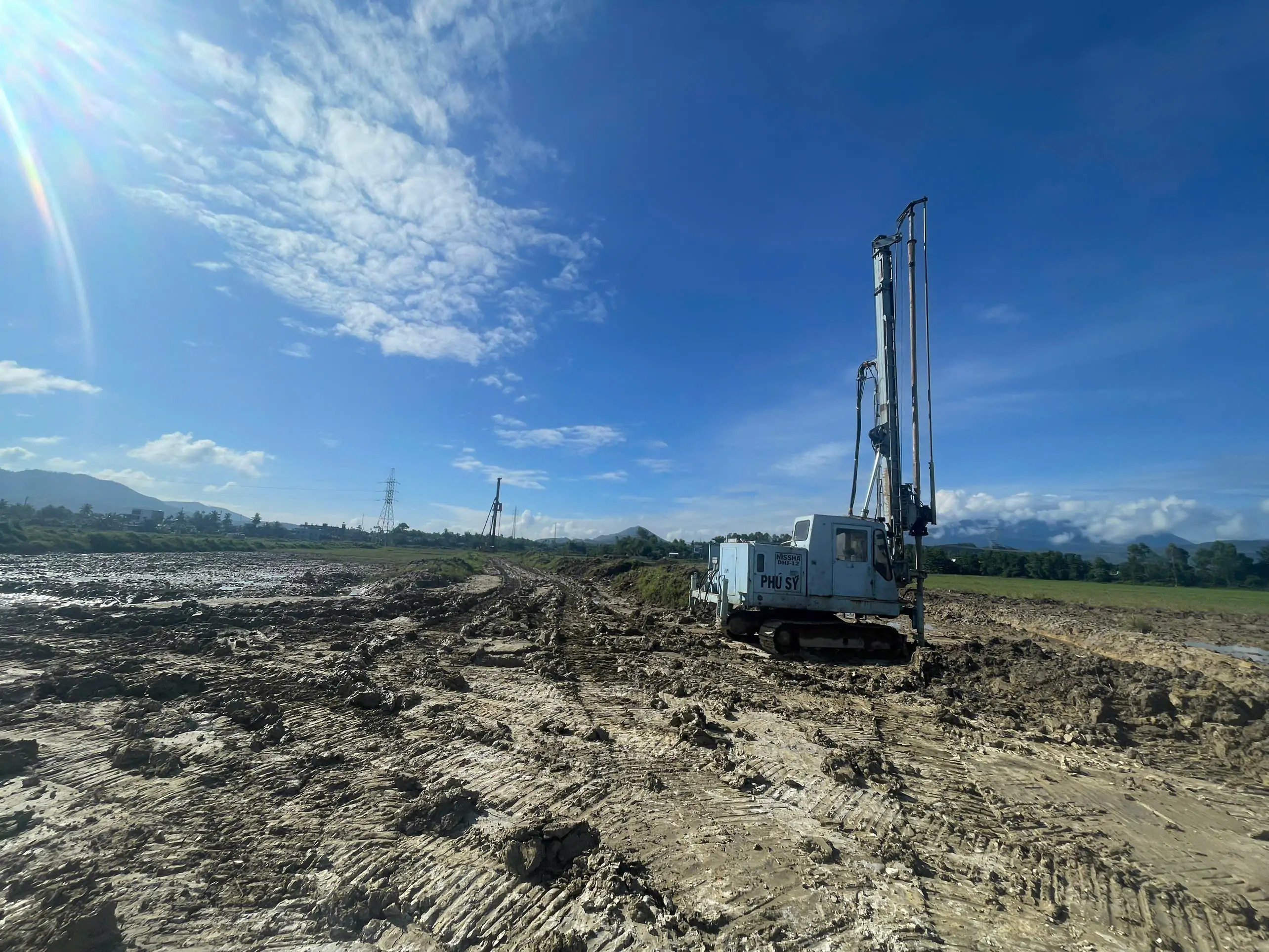 Công ty Cổ phần Đầu tư và Xây dựng nền móng Phú Sỹ phụ trách thi công hạng mục Gia cố đất yêu bằng cọc xi măng đất D800 với hàm lượng xi măng 280kg.m3. Tổng khối lượng thi công: 40.000md.